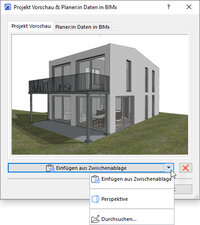 In ArchiCAD können Sie über Verwaltung / Projekteinstellungen / Projekt Vorschau & Planer:in Daten in BIMx ein Fenster aufrufen, in welchem Sie ein Vorschaubild spezifisch für Ihr Projekt erstellen können.