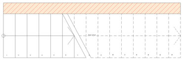 • Wenn der Winkel für den Antritt bekannt ist, ziehen Sie eine Linie lotrecht vom Antritt zur Treppenseite. Im Schnittpunkt liegt der Wendungspunkt.