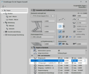 Die Treppe kann mit dem Geschoss verknüpft werden. Bei einer Anpassung der Geschosshöhe werden die Parameter (Auftritt, Steigung) im Rahmen der unter Regeln & Standards gemachten Einstellungen so weit wie möglich verändert.