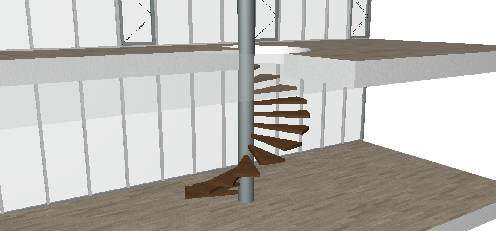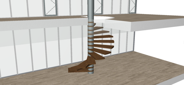 Da die Tritt-/Setzstufen aus GDL-Objekten bestehen, können auch selbst erstellte Tritte in eine Treppe eingefügt werden. Folgend ein Beispiel einer Spindeltreppe mit eigenen Tritten.