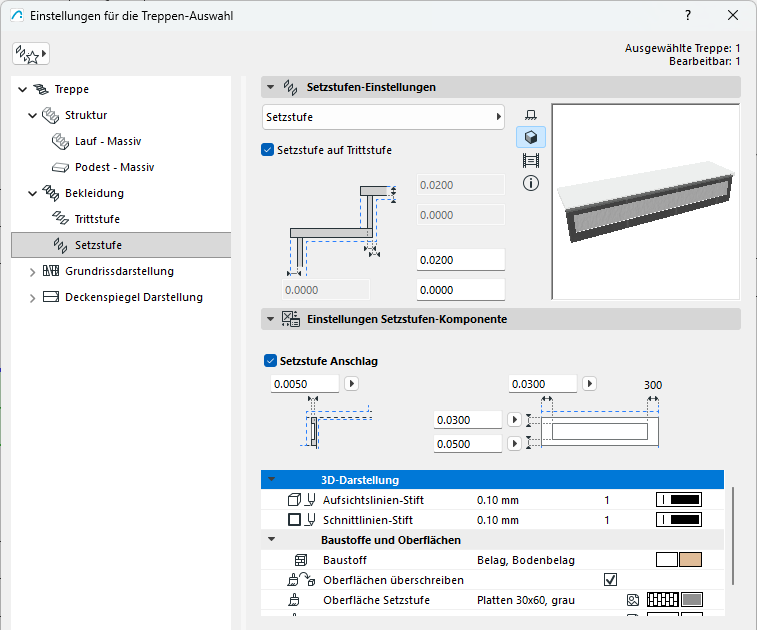 5. Bekleidung: Materialzuweisung und Anpassungen für die verschiedenen Bekleidungen der Treppe