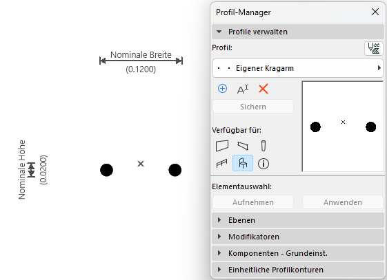 Dank der Einbindung von Profilen in das Treppenwerkzeug können Sie mit dem Profil-Manager eigene Tragstrukturen und Bekleidungen zeichnen.