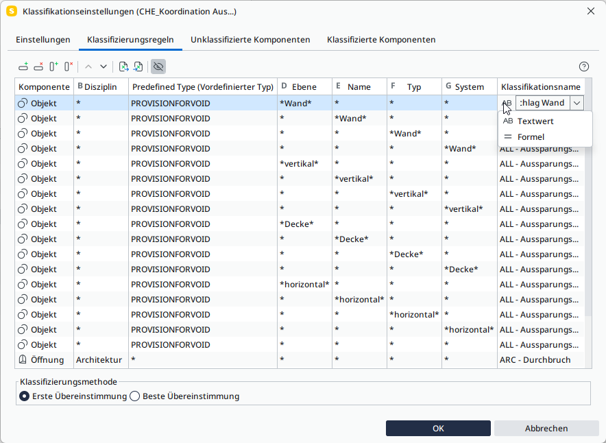 • Klassifizierungsformeln: Der Wechsel zwischen den Modi Formel und Textwert in den Klassifizierungseinstellungen erfolgt nun sofort.